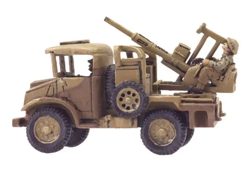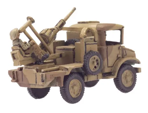 Contains 1 truck mounted AA gun, 1 gunner and 1 driver
