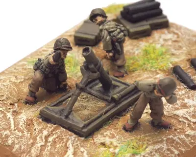 1 command team (3 miniatures, 1 Observer team (2 miniatures), 4 4.2" Mortars, 16 crew, 2 small and 4 large bases.