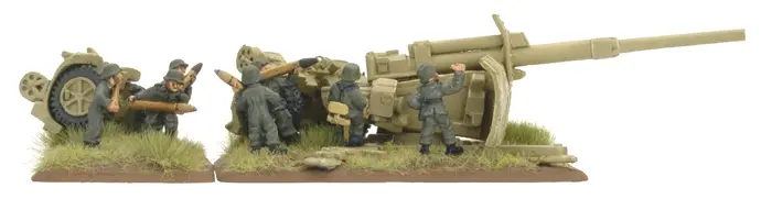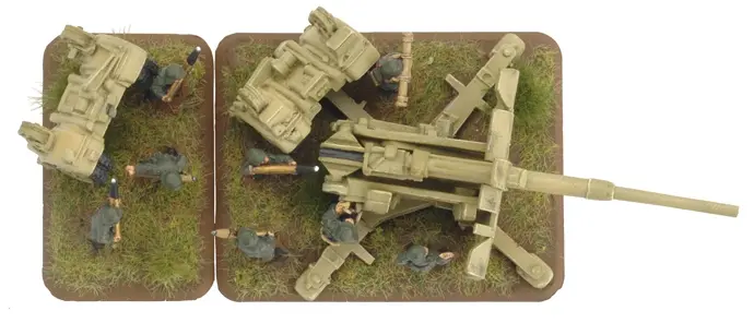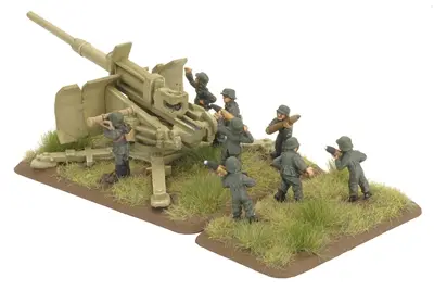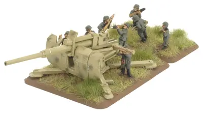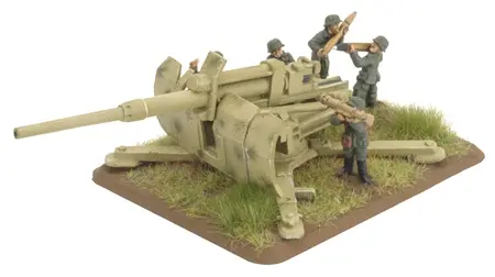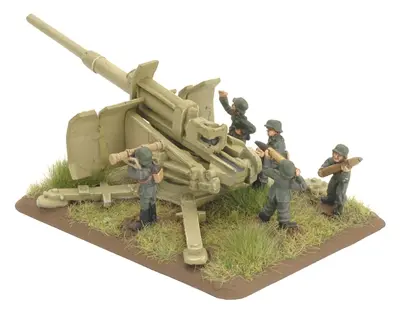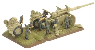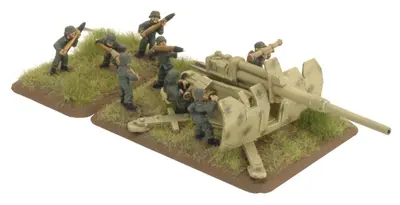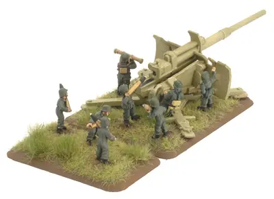 Includes one 8.8cm FlaK41 anti-aircraft gun, ammunition limber, eight crew figures, one medium base and one large base.