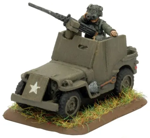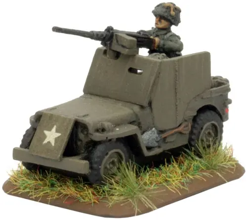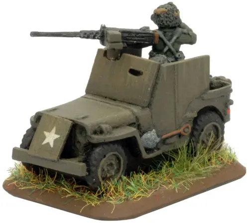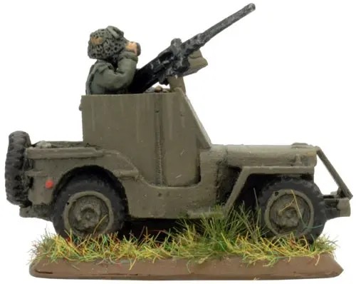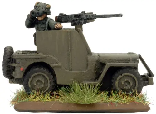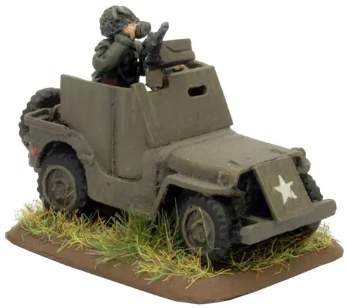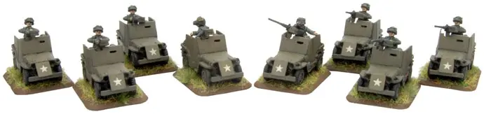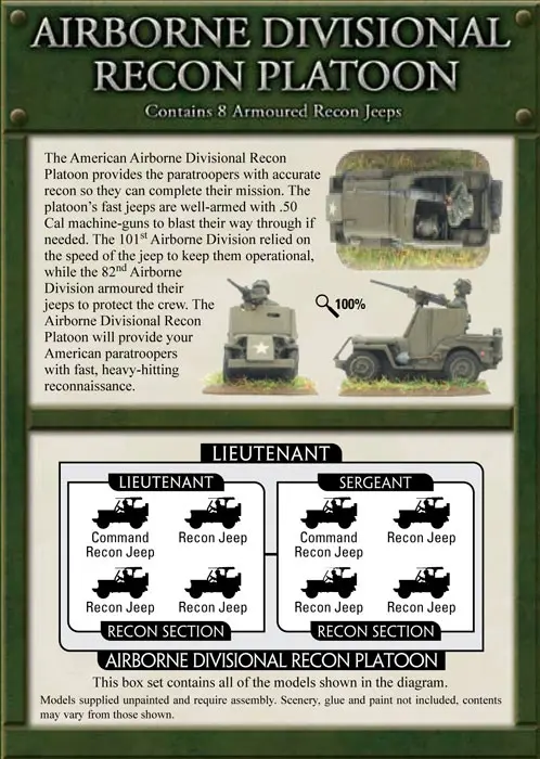 The Airborne Divisional Recon Platoon will provide your American paratroopers with fast, heavy hitting reconnaissance. You may field armoured jeeps with your 82nd Airborne Division.
