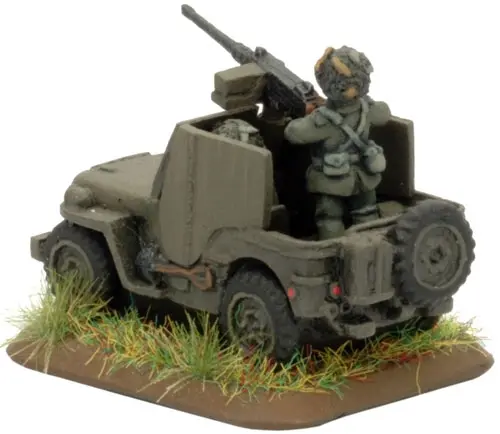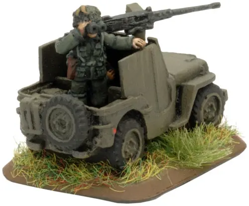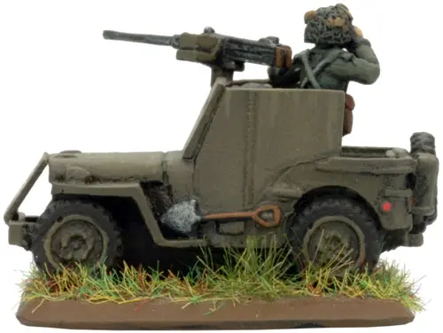 The platoon’s fast jeeps are well-armed with .50 Cal machine-guns to blast their way through if needed.