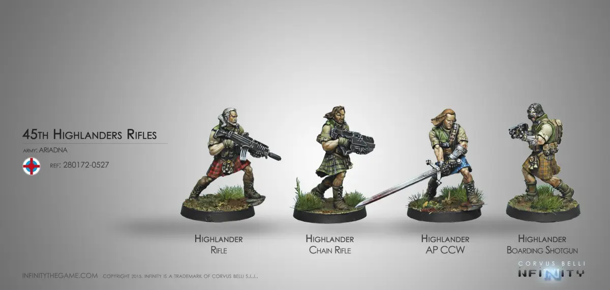 The 45th Highlanders Rifles are crazy Caledonian warriors who savagely jump into combat in a furious charge against the enemy. Violence is the only way of life for them and there is nothing that can stand against this enraged horde.