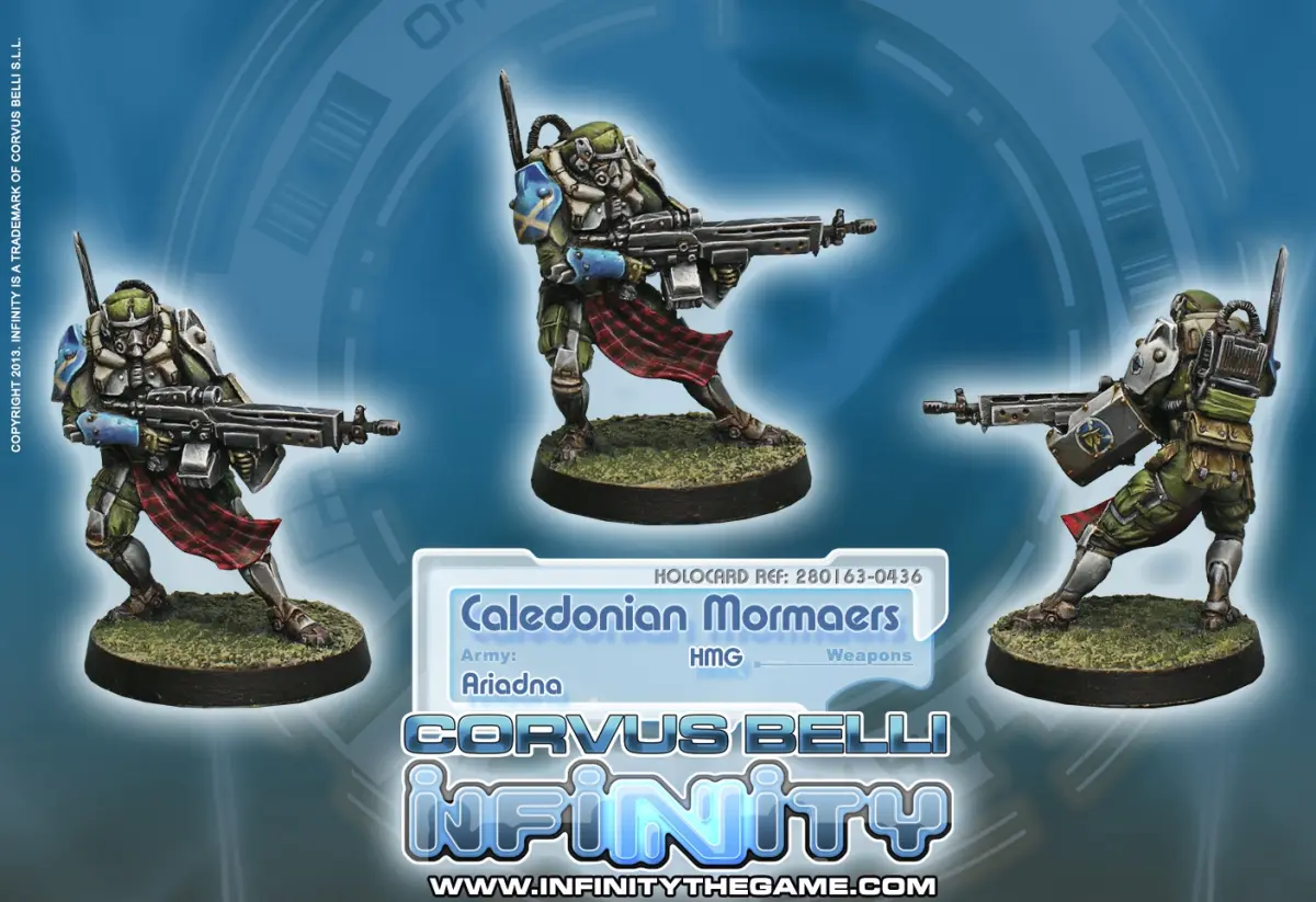 These are the aristocrats of the Caledonian army. Wearing the most valuable armor and firing the most expensive ammunition, only the finest can join the Mormaer Regiment. And now they get the HMG, the queen of support weapons in its AP version. Let this Teseum-armored trooper lead your Caledonian Army in its assault!