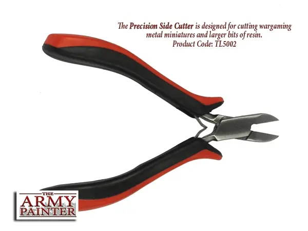 The Metal Precison Side Cutters is for wargaming metal miniatures and larger bits of resin. Made from stainless steel and with safety grip handle, it is a lot more durable than the Plastic Side Cutter although less precise.