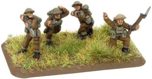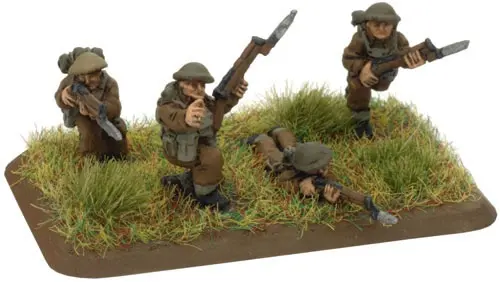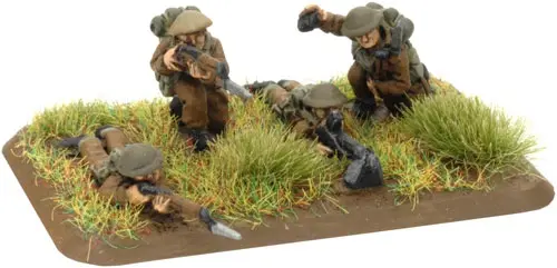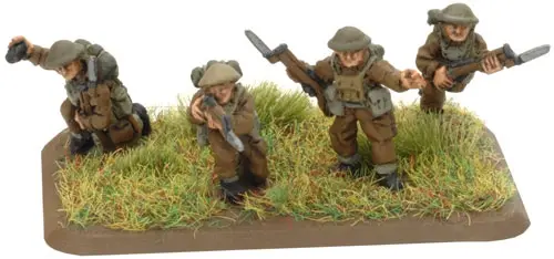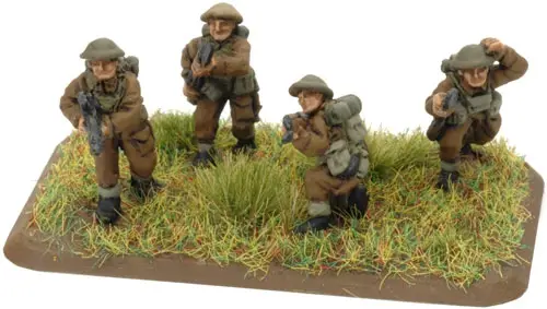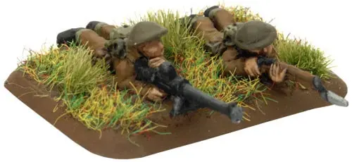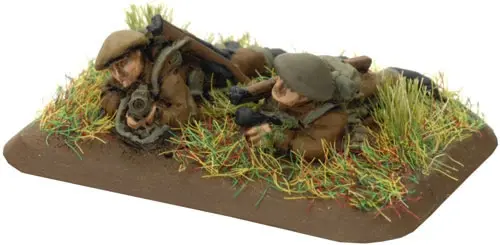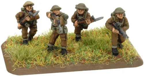 The rifle squads (or sections as they are termed in the British Army) are eight men strong, with a corporal, Bren gunner, and six riflemen. The Lee Enfield Mk III rifle they use is much the same weapon as their fathers were armed with at the end of the Great War, but the first-rate Bren light machinegun has replaced the old Lewis gun. Two new weapons that would be unfamiliar to their fathers are the 2” light mortar and the Boys anti-tank rifle.