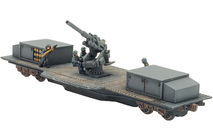 includes one 10.5cm Flak39 Railway car with one 10.5cm Flak39 gun and 10 crew figures.