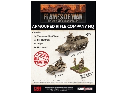 Includes two Plastic Formation Command Thompson SMG Teams. two Plastic Jeeps, one M3 Halftrack Bazooka Teams and six Unit cards.