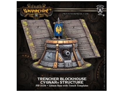 Blockhouses are often built to support Cygnaran trenchworks, providing girded fire bays and supporting fire in the event of an enemy overrun of the front. Able to withstand direct artillery fire from all but the heaviest enemy guns, these blockhouses return fire with salvos from their impressive cannons while acting as mustering points to reinforce embattled trencher platoons.