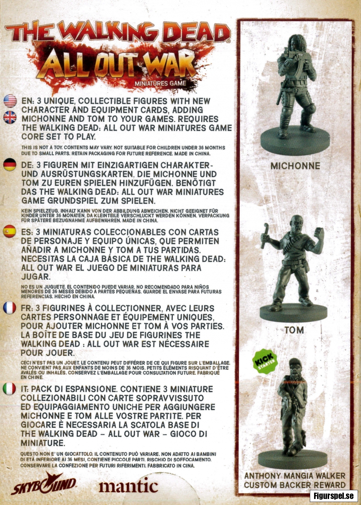 This booster pack contains 3 unique, collectible miniatures allowing you to add Michonne and Tom to your games, along with an extra Walker to bulk out your herd.