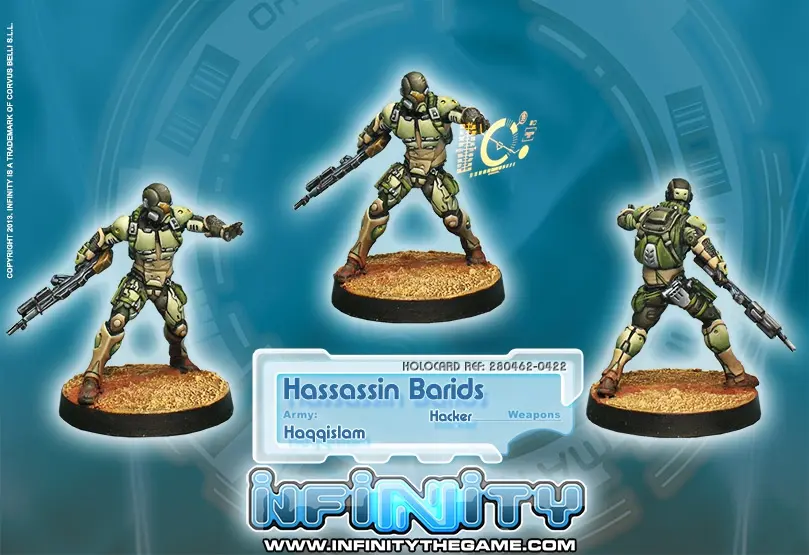 The Hassassin Society draws its power from the indisputable and proven fact that no one can be safe from them. No defense strategy is really effective, because the Hassassin have no need for an escape route: for these expert killers their own deaths are a possibility assumed from the get-go. There is no safe place to hide, because for the Hassassin there are no insurmountable obstacles or barriers. The Hassassin lurk among us freely, and can approach their victims unnoticed wherever they have sought refuge. In today’s world, where society moves more often through information networks than physically, the Hassassin need to have cyber-action capacity. It is therefore little wonder that some of the sect acolytes are specialized in data sphere operations. The designation of these Hassassin is Barid, “messenger”, for they must deliver the message that any threat to the Search for Knowledge is paid for dearly. The task of the Barid is to trace the movements of their objectives through the data sphere, mapping their activity in the network as reference documentation and intelligence data for all other Hassassin operatives. But the real work of the Barid, what they excel at, is cyber-combat: neutralizing cyber-threats and hostile elements which operate via networks. In the style of the society, the Barid are cyber-assassins capable of eliminating their targets with gleaming cyber-attacks that fry brains and systems in a flash of destruction. A sudden and spectacular death is the signature of the Hassassin Society as much in the virtual world as in the real world.