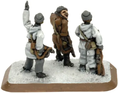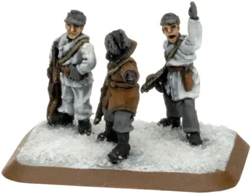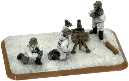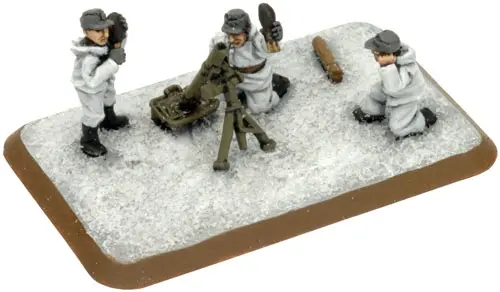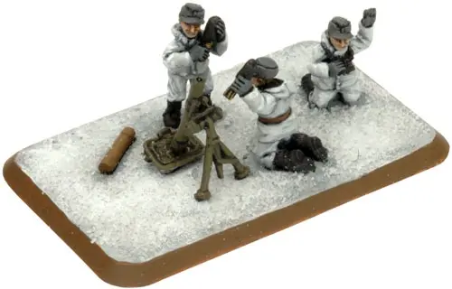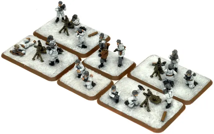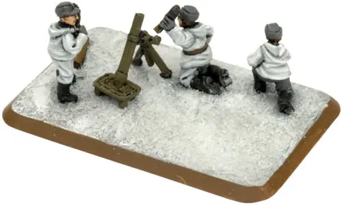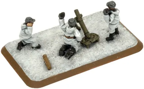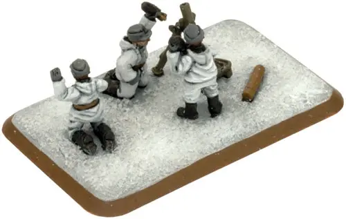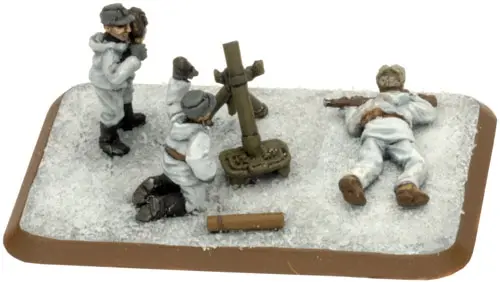 includes one Command Rifle team, one Observer Rifle team, two Mortar section each with two Tampella M/35 81mm mortar teams, one Small three-hole base, one Small two-hole base & four Medium four-hole bases.