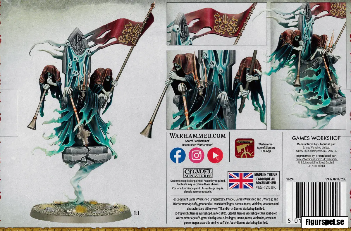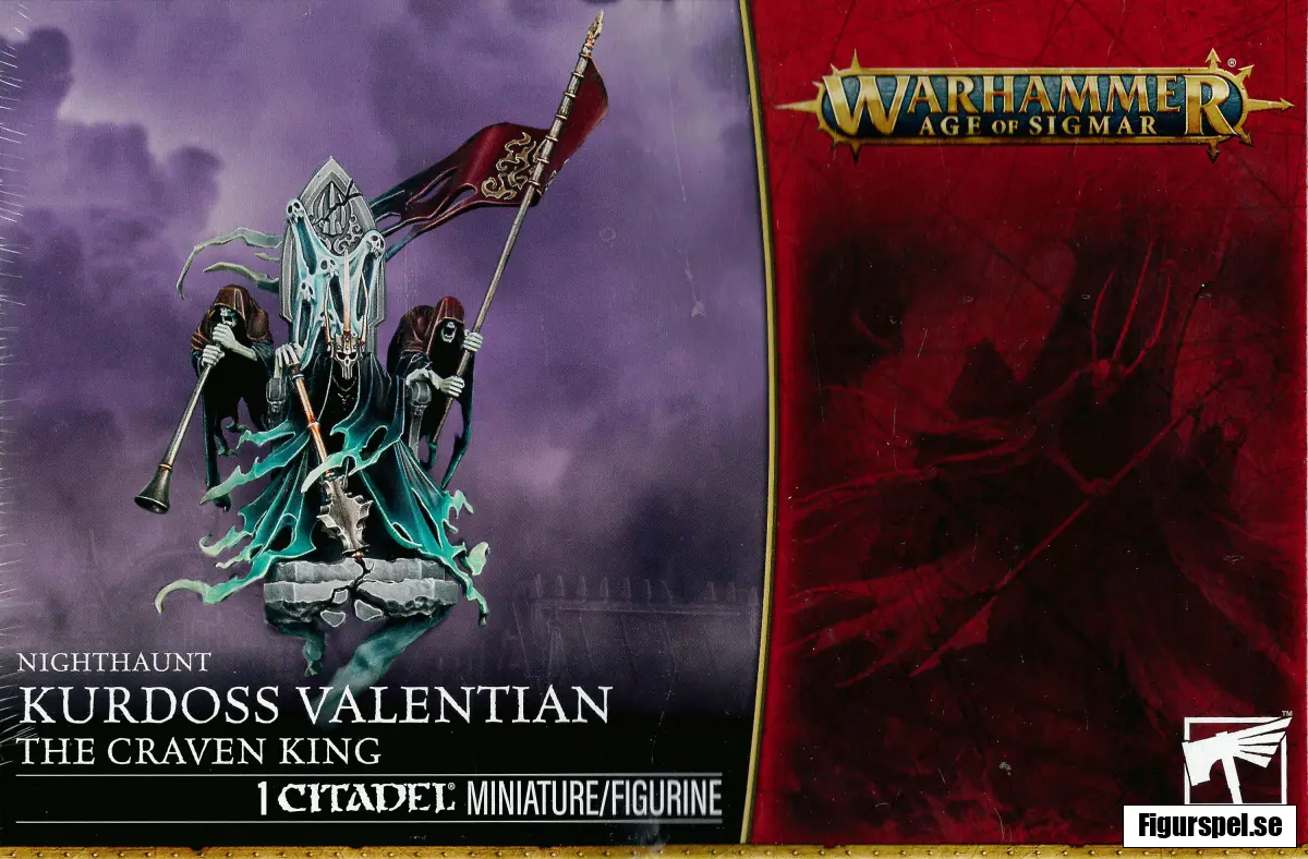 En mäktig centerpiece till Nighthaunt. Kurdoss sitter på sin svävande tron och krossar fiender med sitt Sepulchral Sceptre, flankerad av 2 st Wraith Heralds.