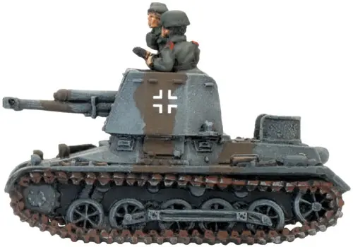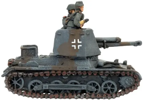 To meet this need, they fitted a Czech 4.7cm anti-tank gun in a limited traverse mount on a Panzer I chassis with a gun shield to protect the crew. The resulting vehicle was called the 4.7cm PaK(t) (Sf ) auf Panzerkampfwagen I Ausf B, or Panzerjäger I for short.