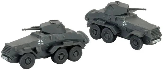 with two Sd Kfz 231 (6-Rad) armoured cars.