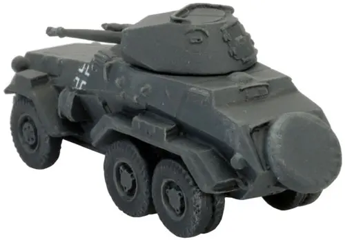 Manned by a crew of four and protected by up to 8mm of armour plate, the Sd Kfz 231 (6-Rad) was armed with a 2cm KwK30 L/55 cannon and single 7.92cm MG13. Mounted is a turret at the rear of the vehicle, these weapons enjoyed a 360° traverse.