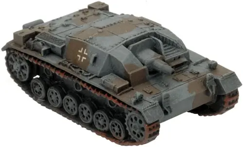 Mobility: Fully-tracked; Front 5; Side 3; Top 1 Range: 24"/60cm; ROF 2; AT 7; Firepower 3+