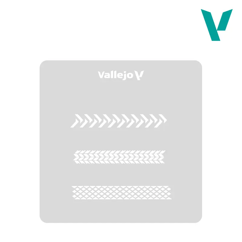Stencil för att skapa realistiska däckspår på modeller och dioramor. Perfekt för att återskapa effekter av damm och torr lera på asfalt och andra hårda underlag.